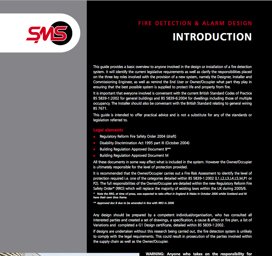 Downloads ; MarkOne Reference Documents Fire Extinguisher Specifications Fire Safety Signs Fire Alarm Systems Regulatory Framework Guides Fire & Rescue Services Act (2004) Regulatory Reform Order Managing False Alarms SMS D&P Guidelines SMS D&P Guide – Bells SMS D&P Guide – Design SMS D&P Guide – Door Release SMS D&P Guide – Electronic Sounder Strobe SMS D&P Guide – FP585 Control Panel SMS D&P Guide – Manual Call Point SMS D&P Guide – SenTri Control Panel SMS D&P Guide – Electronic Sounder SMS D&P Guide – Vision Detectors SMS General Guidelines SMS Emergency Lighting Guide SMS Conventional Brochure SMS SenTri System Brochure